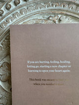 If you are hurting, healing, feeling, letting someone go, or starting a new chapter and learning to open your heart back up again, this book was meant to find you when you needed it most.