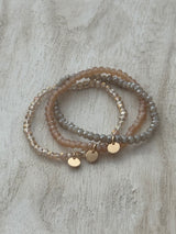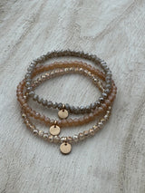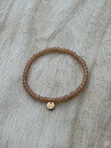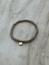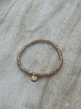 Handmade with tiny crystal beads and strung on high-quality crystal stretch string, this bracelet is designed for a perfect, comfortable fit—one size fits most. Finished with a simple mini gold disk for a personal touch, you can add your initial or leave it blank as a meaningful reminder.
