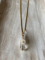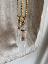 Made with 100% natural clear quartz crystal, our essential oil vial necklaces combined mother natures two most powerful elements from nature: crystals and essential oils. Worn as a beautiful reminder to pause, breathe and realign and can serve as a vessel for your daily wellness ritual, promoting feelings of well-being, clarity and positivity.