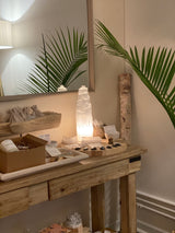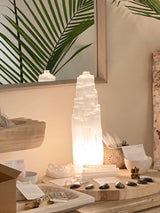 This high vibrational selenite lamp from Morocco is meant to dispel all negative energy from the mind, body and home. Known for bringing calming energies, deep peace and mental clarity while removing energy blocks. Corresponding to your third-eye chakra, this lamp promote Honesty, Harmony & Fertility.